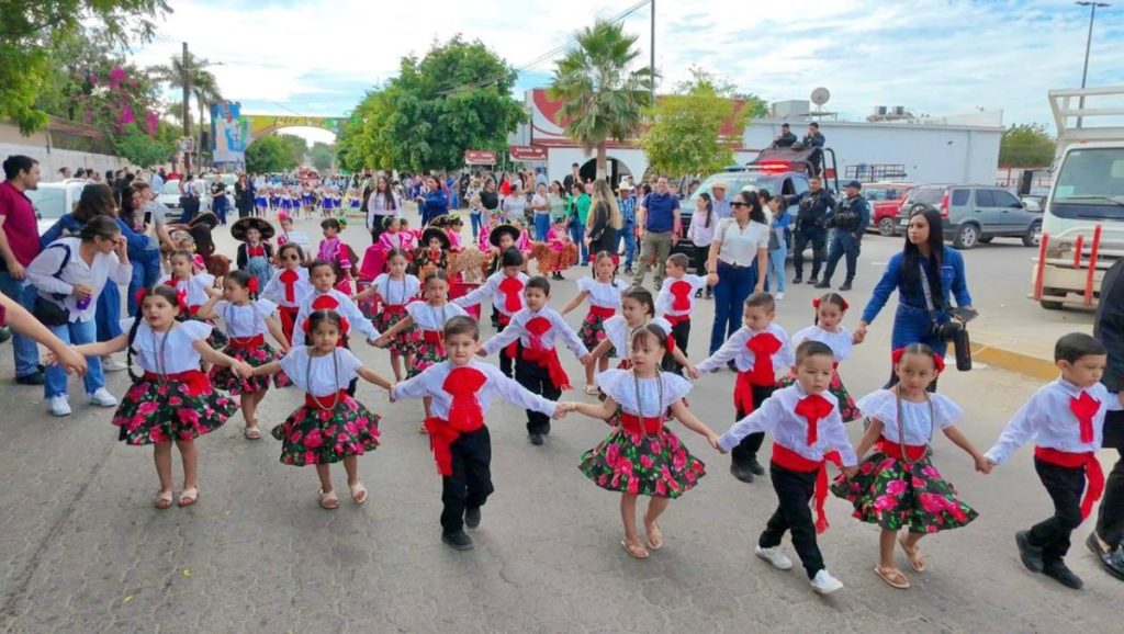 Niñas y niños de El Fuerte participan en emotivo desfile por el 115 aniversario de la Revolución Mexicana.-