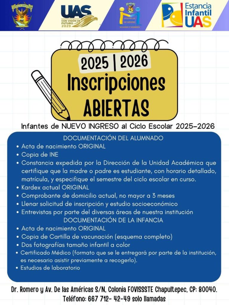 La UAS abre inscripciones para su Estancia Infantil, un apoyo gratuito para padres y madres estudiantes; ofrece formación integral y nutrición.- Leer más »
