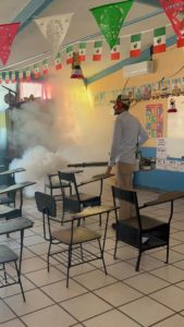 H. Ayuntamiento de El Fuerte realiza jornadas de fumigación en planteles educativos.-