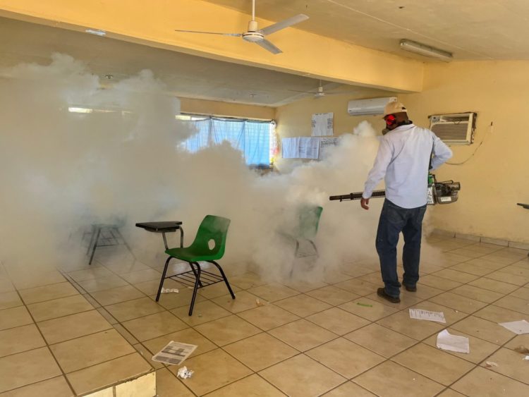 H. Ayuntamiento de El Fuerte realiza jornadas de fumigación en planteles educativos.-