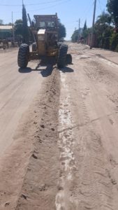 En base a la programación de la dirección de obras públicas, los trabajos se vienen haciendo sin contratiempo, y este día de toco a la comunidad de Vinaterías, perteneciente a la sindicatura de Mochicahui, donde maquina de servicio pesado se encuentra realizando raspado y nivelado de calles.