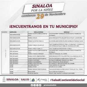 RENÉ VEGA: Periodismo Disruptivo. Los Mochis, Ahome, Sinaloa. A 28 de Noviembre de 2025.- A partir de este viernes 29 de noviembre dará inicio en Ahome la jornada “Sinaloa por la Niñez”, una estrategia estatal de vacunación que busca completar los esquemas pendientes, especialmente en niñas y niños, informó la doctora María Isabel Astorga Soto, Directora de Salud Municipal, quien destacó el acompañamiento del Presidente Municipal Antonio Menéndez De Llano Bermúdez para fortalecer las acciones preventivas en el municipio.