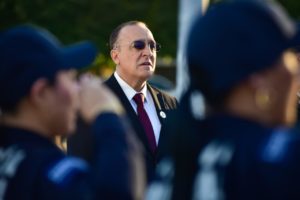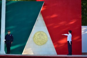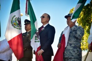 *El Presidente Municipal Antonio Menéndez de Llano Bermúdez encabezó las actividades conmemorativas, que iniciaron con el izamiento en la Explanada de Palacio y continuaron con el izamiento e incineración de banderas en el Monumento a la Bandera