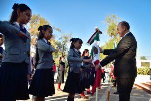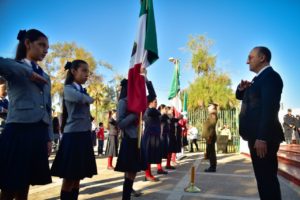 Para dirigir el Juramento a la Bandera, se contó con la participación de Juan Carlos Gaxiola Molina, de 6to. Grado de la escuela Agustín Melgar, del ejido La Despensa. El Himno Nacional fue interpretado por la alumna Jana Victoria Trejo Rodríguez, estudiante de 5to. Grado de la escuela Constitución Mexicana, de Los Mochis.