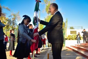 “Jóvenes, venimos en nombre de México a encomendar a su patriotismo esta bandera que simboliza su independencia, su honor, sus instituciones y la integridad de su territorio. Al concederles el honor de ponerla en sus manos, la patria confía en que, como buenos y leales mexicanos y mexicanas, sabrán cumplir su protesta”.
