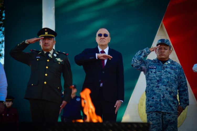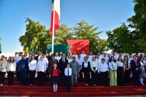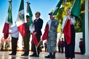 La ceremonia inició con el Izamiento de Bandera en la Explanada del Palacio Municipal, donde autoridades, servidores públicos, estudiantes y ciudadanía se unieron para rendir honores al lábaro patrio.