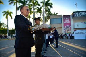 Ahome honra a la Bandera con ceremonia cívica en Palacio Municipal y el Monumento a la Bandera.