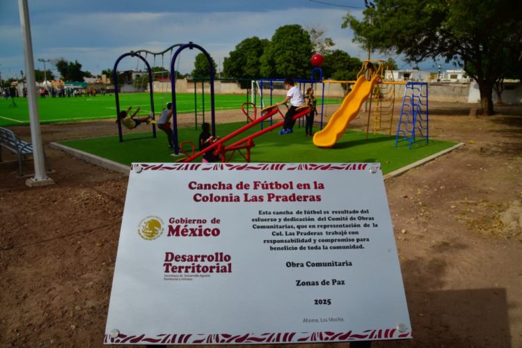 Con presencia de autoridades federales de SEDATU e INFONAVIT se inauguró espacio deportivo Las Praderas-Las Cañas con valor de 6.5 millones de pesos en Los Mochis.