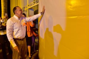 Palacio Municipal se iluminó de color naranja para reforzar el llamado a erradicar la violencia de género. Alcalde Antonio Menéndez preside dicho evento.