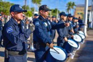 Durante la sencilla, pero emotiva ceremonia, se Izó Bandera a Toda Asta, engalanado por la Banda de Guerra y Escolta de la Secretaría de Seguridad y Protección Ciudadana.
