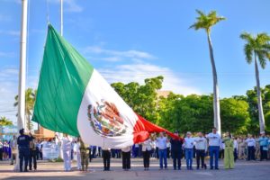 Acompañado de mandos militares, autoridades cívicas, educativas y ciudadanos se Izó y Honró la Bandera de México, en Palacio municipal, dónde inicio el tradicional desfile; en su mensaje, el Alcalde invitó a la ciudadanía a preservar los valores de esta histórica y emblemática fecha para todos los mexicanos.-