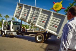 Durante el acto, se hizo una demostración del funcionamiento del nuevo camión rabón con caja recolectora y sistema de volteo, adquirido para reforzar las labores de Servicios Públicos Municipales.