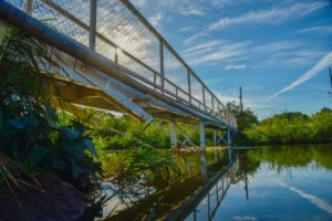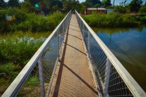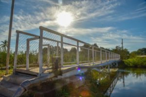 Referente a la rehabilitación de puente metálico peatonal sobre el canal Cahuinahua en el sector conocido como Bordo del Canal en la localidad de Heriberto Valdez Romero, El Guayabo, se realizó una inversión de 313 mil 925 pesos para reponer la estructura, colocar recubrimientos, acabados y limpieza, así como malla ciclónica y piso a base de lámina antiderrapante.