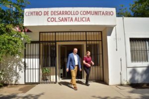 De manera paralela, durante el recorrido en Santa Alicia, vecinos expresaron su agradecimiento por la instalación de servicios básicos. El Presidente Municipal relató que se trata de seis familias que por años carecieron de agua, y que hoy cuentan con seis tomas domiciliarias, instaladas contiguas al CDC del lugar, que además incluyen drenaje y todo lo necesario para su correcto funcionamiento. “Una de ellas me dice que salía por agua hasta varias cuadras, apenas camina para traer garrafones todos los días, entonces, ahora, le llegó el agua y dice que está muy contenta”, narró.