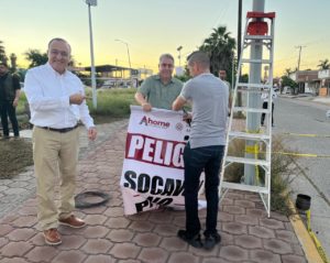 Antonio Menéndez y Cuerpo de Regidores supervisan puntos del socavón de Blvd. Centenario y Niños Héroes.