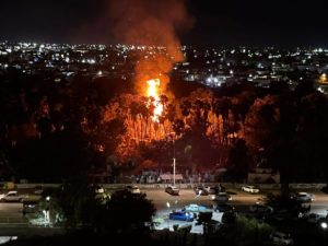 Los Mochis, Sinaloa, a 31 de marzo de 2026.- En estos momentos en las inmediaciones del panteón municipal viejo de la ciudad de Los Mochis, se esta registrando un fuerte incendio en varias de las palmeras que ahí se ubican, las imágenes tomadas son impresionantes, bomberos se dirigen al lugar del siniestro.
