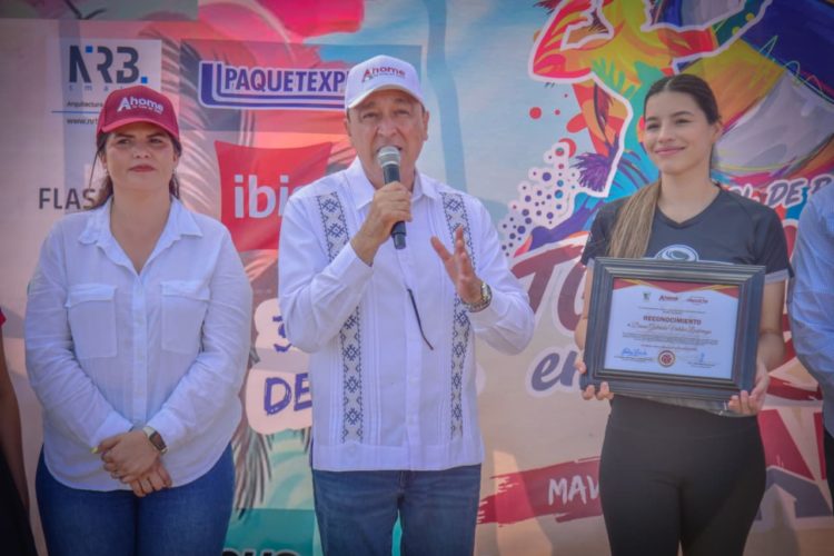 “Muchas felicidades por este gran y merecido reconocimiento a tu trayectoria; sabemos que todavía hay mucho más que le vas a dar a Sinaloa, a Ahome y a México. Y estoy seguro también de que muchas y muchos de ustedes pondrán en alto el nombre de su estado, de su país y del deporte”, expresó el Alcalde.