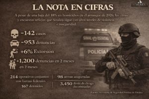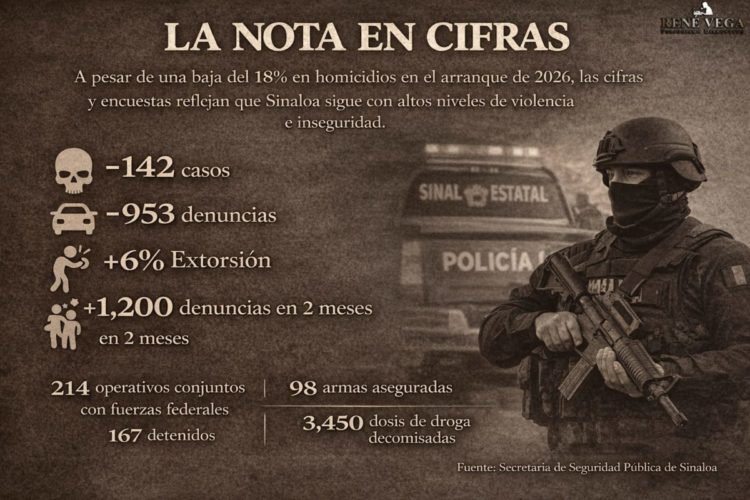 A pesar de que el gobierno estatal presume una reducción del 18% en homicidios dolosos en el arranque de 2026, las cifras siguen reflejando un escenario de violencia persistente en la entidad.