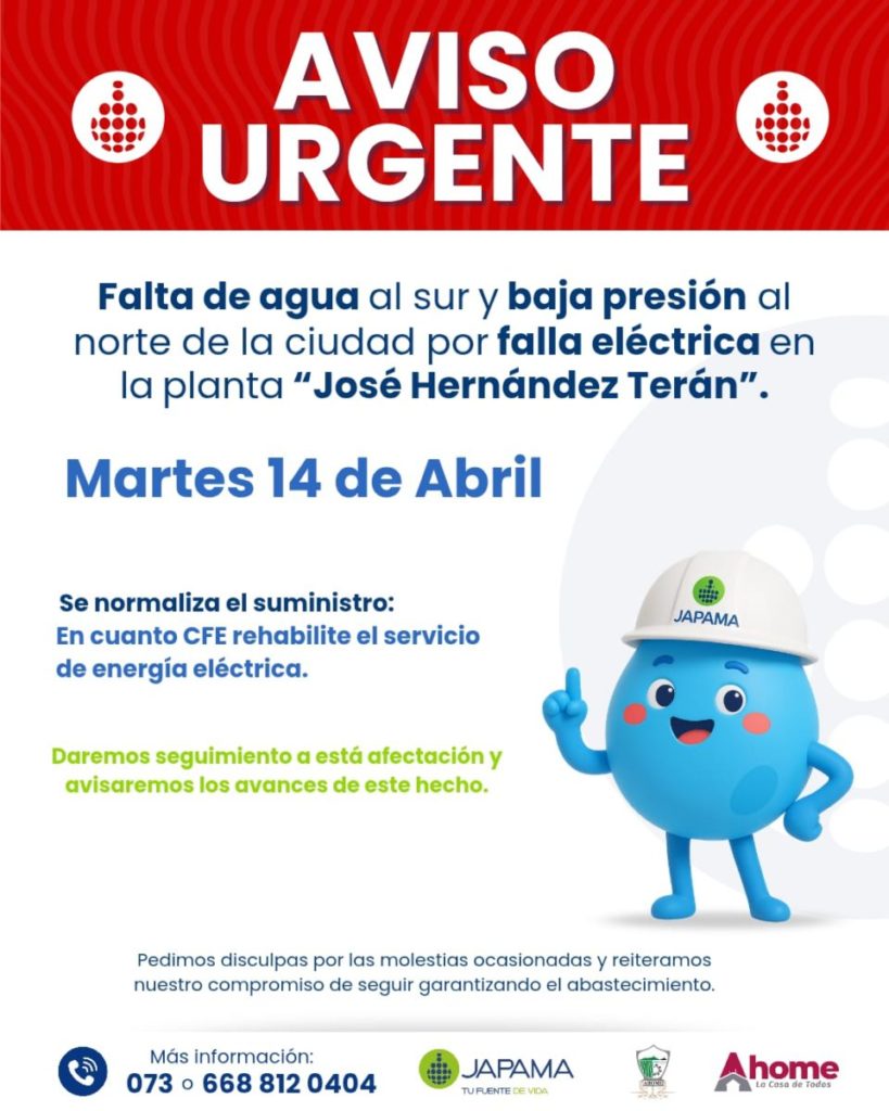 Atención Aviso importante Comunicamos a los habitantes de la Cabecera Municipal que habitan en la colonia Pablo Macías, Loma del dique, Loma del panteón, Los Ayones, Palma Sola, Residencial del Rio, Colonia Obrera y Cabanillas que el servicio de agua potable fue suspendido debido a los trabajos de reparación de una fuga en la red …