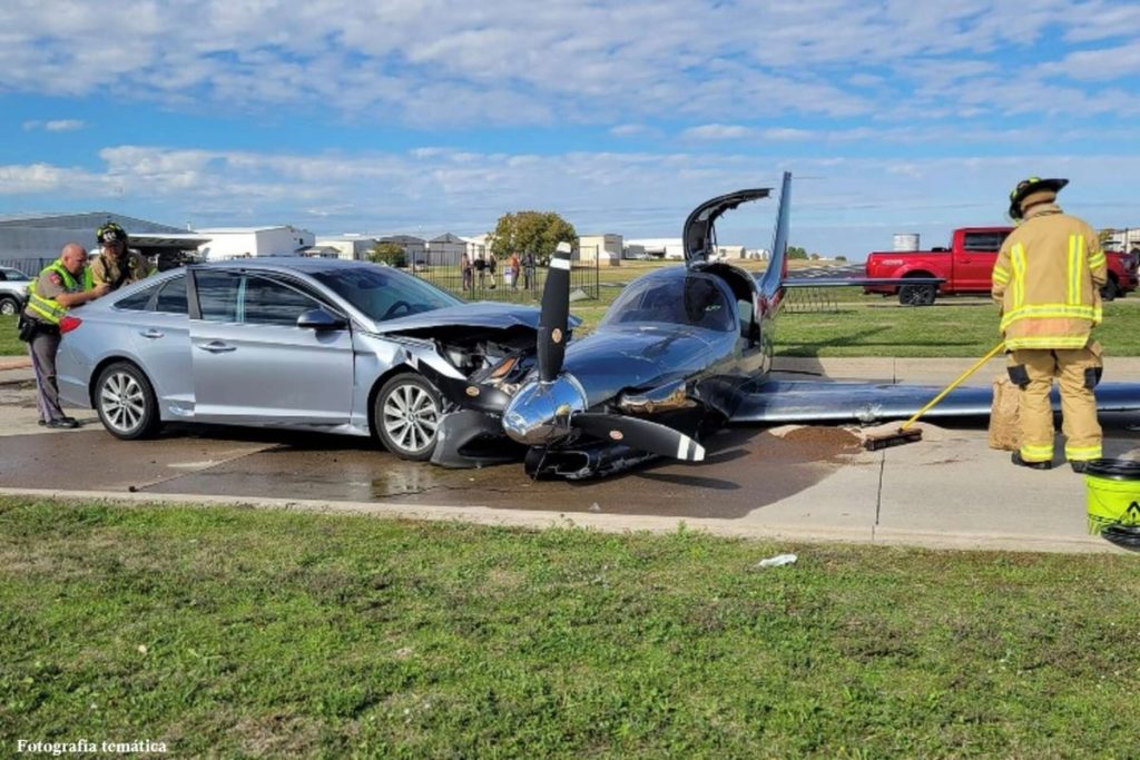 En algún lugar del mundo se tuvo este inusual choque entre una avioneta y un automóvil, lo raro es que el chofer del vehículo ni viendo que la avioneta venía hacía el, nada hizo por moverse.