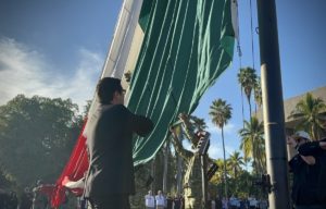 Correspondió al secretario de obras públicas, Raúl Montero Zamudio encabezar el acto cívico en representación del gobernador, Rubén Rocha Moya.