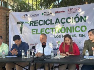 Luis Ernesto Martínez Garibaldi, Jefe de Departamento de Desarrollo Empresarial e Industrial de la Secretaría de Economía en Ahome, hizo un llamado a la ciudadanía a sumarse a este tipo de actividades, al destacar que el reciclaje electrónico fortalece la cultura ambiental y ayuda a disminuir riesgos para la salud pública.