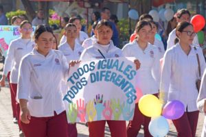 La marcha culminó frente al Palacio Municipal, donde se llevó a cabo un acto protocolario en el que se refrendó el compromiso del municipio con las personas con discapacidad. Posterior a este acto, se realizó una convivencia en DIF El Fuerte, con bailes de botargas y sorpresas para las alumnas y alumnos de educación especial.