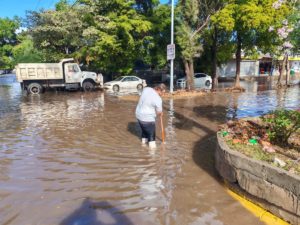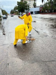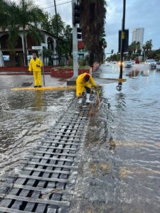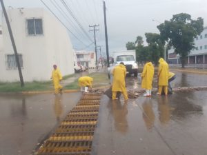“Estamos haciendo trabajo de limpieza y desazolve, limpieza de rejillas y de basura, sobre todo en bocas de tormenta. También estamos sacando el agua de algunas calles con bombas y pipas, trabajando desde la madrugada”, señaló.