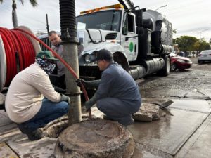 RENÉ VEGA: Periodismo Disruptivo. Los Mochis, Ahome, Sinaloa. A 29 de Enero de 2026.- La Junta de Agua Potable y Alcantarillado del Municipio de Ahome (JAPAMA) realizó trabajos de sondeo y succión con equipo Vactor en la red de alcantarillado ubicada sobre el bulevar 10 de Mayo, entre Rosales y Río Sinaloa, en el sector del Infonavit Macapule, luego de detectarse un taponamiento severo.