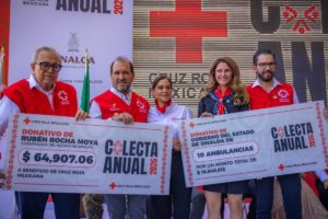 Acompañado de la presidenta del sistema DIF, Eneyda Rocha Ruiz y Carlos Bloch Artola, delegado de la Cruz Roja Sinaloa, el mandatario estatal apeló a la solidaridad de las y los sinaloenses en beneficio de esta benemérita institución, destacando que, el apoyo de la sociedad es clave para continuar con su tarea de salvaguardar la vida y salud de los ciudadanos, guiada por los principios de humanidad, imparcialidad y solidaridad.