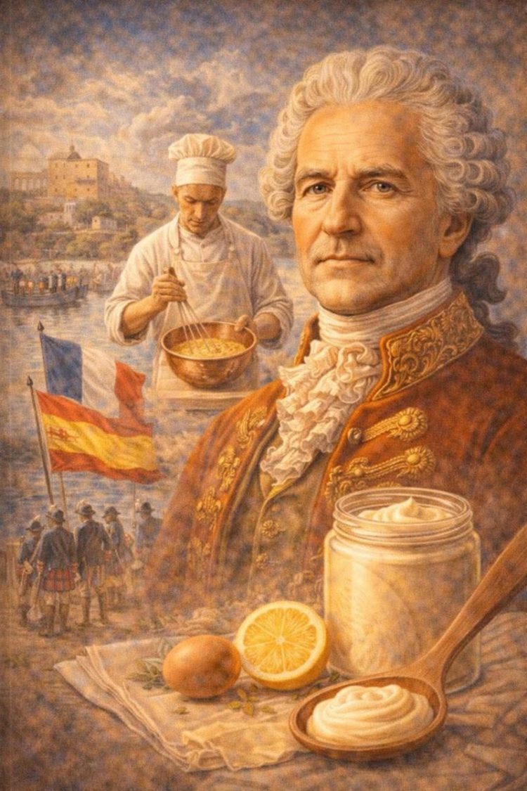 En 1756, el duque de Richelieu, comandante del ejército francés, celebraba una victoria en el puerto de Mahón, en la isla de Menorca. Para el banquete, su cocinero quiso preparar una salsa tradicional, pero se dio cuenta de que no tenía crema.