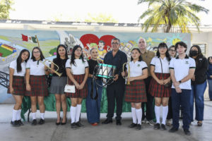 • La entrega de este nuevo equipo refuerza el compromiso de este colegio estatal con la educación artística y cultural, siendo la banda de guerra una identidad institucional de cada plantel, representado por cada alumno que participa y trabaja en equipo.