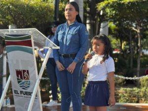 En representación del alcalde Gildardo Leyva Ortega, asistió la Síndica Procuradora Mayra Lilian Osorio Armenta, acompañada de funcionarios municipales, directivos y alumnado de la UPES El Fuerte, quienes participaron en honores a la bandera y presentaron mensajes alusivos a la vida y obra de Benito Juárez.