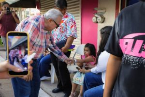 Entre expresiones de alegría y hospitalidad de los vecinos de Angostura, el gobernador Rocha, junto a la secretaria General de Gobierno, Yeraldine Bonilla y la presidenta del DIF municipal, Ana Gutiérrez, recorrió la ruta del desfile, saludando a los locales y algunos turistas, con quienes platicó, recogiendo gratas expresiones de identidad de esta emblemática fiesta de magia y color en el municipio costero.