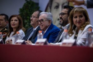 El mandatario estatal reconociendo la trayectoria y el compromiso con la educación, acompañado de Gloria Himelda Félix Secretaria de Educación Pública estatal y Genero Torrecillas líder de la Sección 27 del SNTE, hizo entrega de la condecoración “Maestro Altamirano” a 162 docentes de educación básica y media, que cumplen 40 años o más al servicio educativo de Sinaloa y el país.