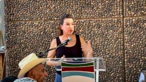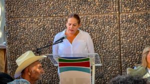 Durante su mensaje la Presidenta de DIF El Fuerte ademas de agradecer a la Beneficencia Pública del Estado de Sinaloa, también reconoció el apoyo a gobierno del estado encabezado por el Gobernador Rubén Rocha Moya.