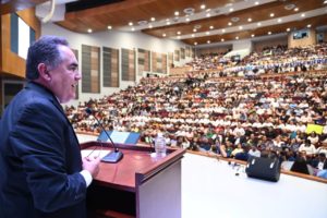 “En estos días debemos decidir si queremos seguir siendo la casa de estudios que da cobertura universal o aquella que nuevamente rechaza jóvenes por no poder atenderlos adecuadamente, es un tiempo para decidir si queremos seguir siendo referencia académica o una Universidad en el rezago (…) pues de seguir en la inercia más temprano que tarde tendremos que renunciar de tajo a todas las prestaciones que están por encima de la Ley, especialmente la jubilación dinámica”, enfatizó.