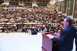 “Hay quienes me llenan de lodo y me injurian para que no avance en esta propuesta (…) no me voy a echar para atrás, la institución bien vale la pena, porque tenemos que seguir atendiendo a nuestros estudiantes (…) por eso vamos a sacrificar parte de nuestro salario para seguir con cobertura universal y pagar becas (…) primero los estudiantes, no vamos a defraudar las cinco funciones sustantivas, vamos a seguir con la cobertura universal”, enfatizó.