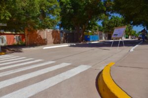 La vialidad contempla banquetas y andadores con todos los elementos que priorizan al peatón, siendo una calle amplia y con concreto hidráulico.