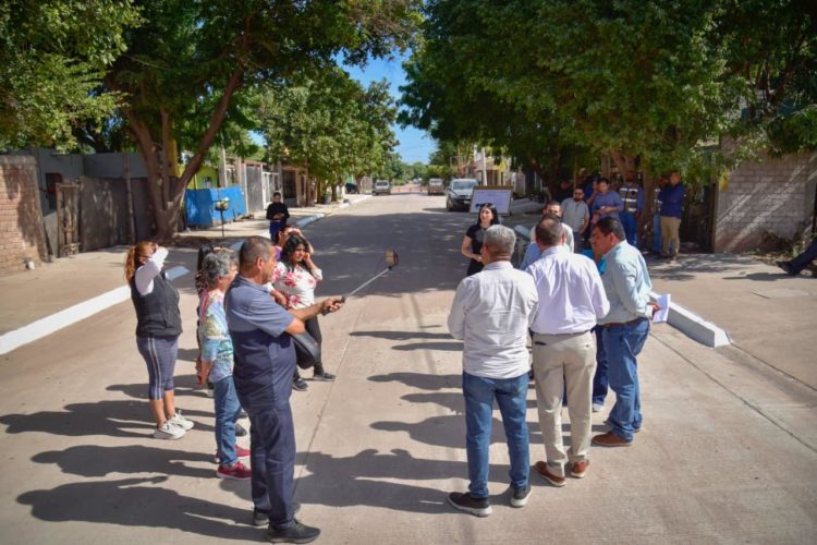 Los Mochis, Ahome, Sinaloa, a 17 de febrero del 2026.- El Presidente Municipal Antonio Menéndez De Llano Bermúdez, visitó a vecinos del sector Nueva Revolución, para entregar la obra de pavimento en la calle Huinolo, de Olivos a calle Mora.
