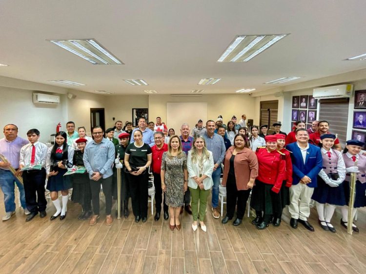 Los Mochis, Ahome, Sinaloa, a 12 de marzo del 2026.- La Dirección de Educación del Ayuntamiento de Ahome realizó un sorteo de kits de Bandera entre las más de 90 instituciones educativas que participaron en el tradicional Desfile de Escoltas el pasado 24 de febrero, y se entregaron a los ganadores en una ceremonia en el salón de cabildo de palacio municipal.