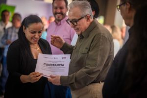 “Este año definimos que este importante sector del autoempleo, en los oficios, era importante tomarlo en cuenta y por eso trabajamos de la mano con el ICATSIN, donde se capacitó gratuitamente a los 150 beneficiarios del día de hoy en los diferentes oficios, y no nada más eso, van a recibir equipos por un valor de 1.2 millones de pesos, alrededor de 740 equipos”, explicó.