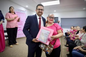 RENÉ VEGA: Periodismo Disruptivo. Culiacán, Sinaloa, a 10 de diciembre de 2025.- La Secretaría de Salud, a través de la Beneficencia Pública del Estado y en coordinación con el Voluntariado Estatal, realizó la entrega de 40 prótesis externas de mama y 78 brasieres porta prótesis a 40 mujeres que actualmente se encuentran en tratamiento o que han superado el cáncer de mama.