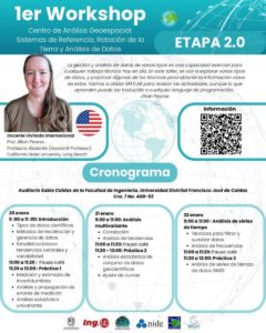 El investigador dio a conocer que este taller se derivó de las acciones impulsadas por el Taller de Desarrollo de Capacidades en Geodesia para las Américas, organizado conjuntamente por el Centro de Excelencia Geodésica de las Naciones Unidas. Comentó, además, que el workshop fue impartido por la PhD Jillian Pearse, profesora de la Universidad Estatal de California en Long Beach, y tuvo como propósito explorar distintos tipos de datos geoespaciales, así como practicar técnicas especializadas para resolver problemas técnicos, científicos y de aplicación práctica.