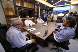 En esta plática con los fedatarios, el mandatario estatal primero felicitó al licenciado José Luis Polo Palafox, por sus nuevas oficinas, donde da trabajo a 14 personas, y se refirió al papel tan importante que desempeñan en la sociedad.