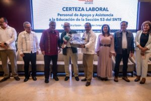 Asimismo, destacó que, durante su administración ha habido un reconocimiento social e institucional hacia este sector de trabajadores tanto de la sección 53, como de la sección 27 se han beneficiado de mejoras salariales y prestaciones, lo que garantiza sus derechos.