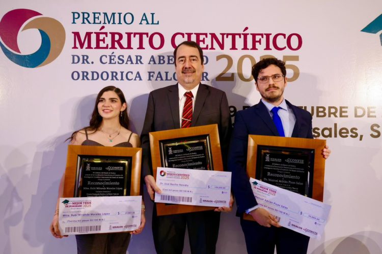 En esta ceremonia anual, el mandatario estatal también entregó otros dos galardones, que corresponden al Premio “Eustaquio Buelna” a la Mejor Tesis de Posgrado, en las modalidades de Maestría y Doctorado, correspondiendo la primera a la maestra Rubí Miranda Morales López; y la segunda, al doctor Manuel Adrián Picos Salas, reconocimientos que al igual que el Premio al Mérito Científico otorga mediante la deliberación de un jurado, la Coordinación General para el Fomento a la Investigación Científica e Innovación del Estado de Sinaloa (CONFÍE), dirigida por Carlos Karam Quiñones, quien acompañó al gobernador Rocha en la entrega de los premios.