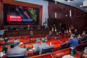 El mandatario estatal fue invitado por la Dirección de la Escuela de Guerra Naval, perteneciente a la Universidad Naval que alberga este Centro de Estudios, para exponer su ponencia ante 35 cursantes de la LIX promoción de la Maestría en Seguridad Nacional, que cursan capitanes de la Secretaría de Marina, coroneles de la SEDENA, personal del Centro Nacional de Inteligencia (CNI), de la Agencia Nacional de Aduanas de México (ANAM), y además con presencia internacional, con un capitán naval de Guatemala, y un teniente coronel de China.