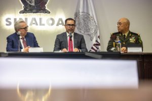 “Y aquí en el estado de Sinaloa se toma como ejemplo, y hay muchas formas de comprobarlo, y los hechos son los que dan fe, dan evidencia del avance que se tiene, cada uno de nosotros desde su particular agenda aporta un capital importantísimo para el objetivo que tenemos; seguiremos trabajando hombro con hombro, codo a codo, no sólo con los integrantes de las Fuerzas Armadas, sino con todos los integrantes de la Mesa de Seguridad y del gabinete estatal, así continuaremos avanzando en el encargo que tenemos en beneficio de todas las y los sinaloenses”, dijo el general.