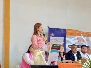 Posterior a la Activación Naranja, se realizó la entrega de cartillas de los derechos de la mujer, actividad coordinada junto al Sindicato Nacional de Trabajadores de la Educación (SNTE), con la participación de más de 500 docentes de distintos niveles educativos.